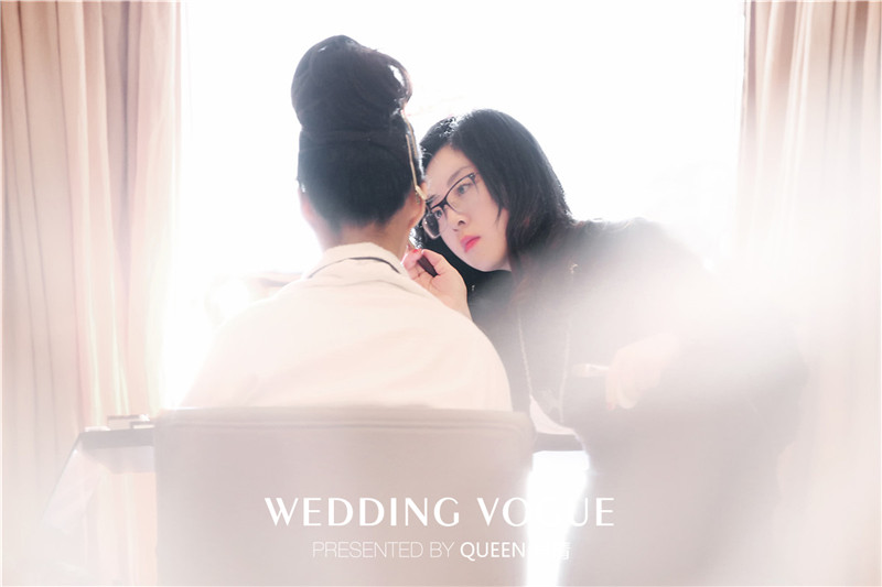 06年Queen开始独立跟妆,第一单在寒冷的12月,天空飘着毛毛细雨,她提着厚重的化妆箱去客户家里试妆,担忧不是没有的,好在结果皆大欢喜,客户的肯定让她第一次偿到“喜悦“的滋味,独自开心了好几天。其实,做自己喜欢的事,付出再多也会心甘情愿吧,哪怕花光所有报酬买一盒眼线膏。有一次跟妆后发现新娘眼线用错,她为此沮丧了很久,为了让后期的新娘可以用到合适的眼线膏,她几乎花光了当天跟妆的全部报酬。这样的事情在她的职业生涯中并不罕见,靠自己白手起家的她,所赚金额都用来购买化妆品,同一种产品,她会购买很多不同的品牌,每一种适合的新娘都不一样,为的只是让每一位新娘都能收获属于自己独一无二的美。