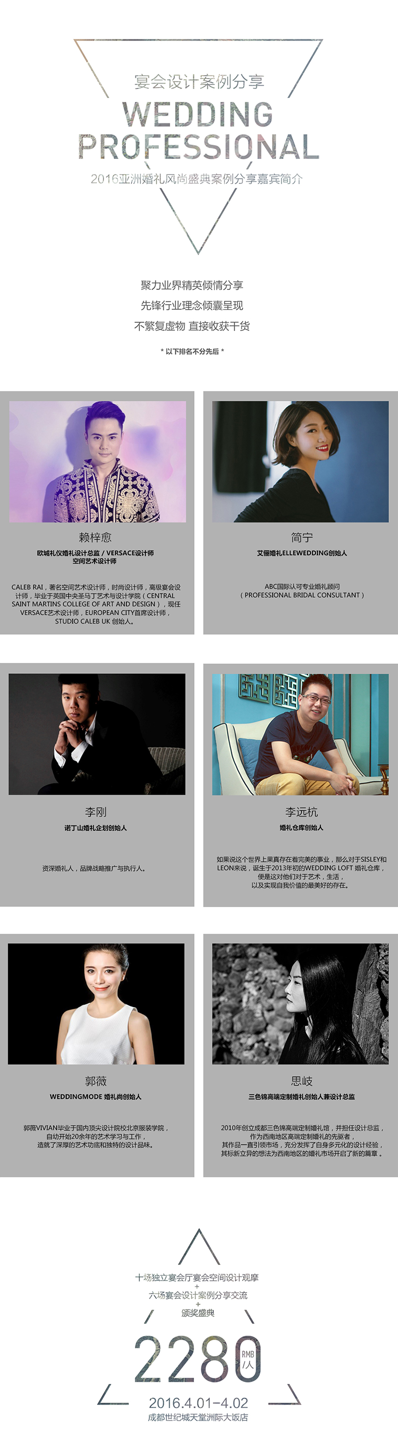 4月1日、2日,亚洲婚礼风尚盛典将达到高潮,影像分享课程、主持分享课程与宴会空间设计分享同时进行。