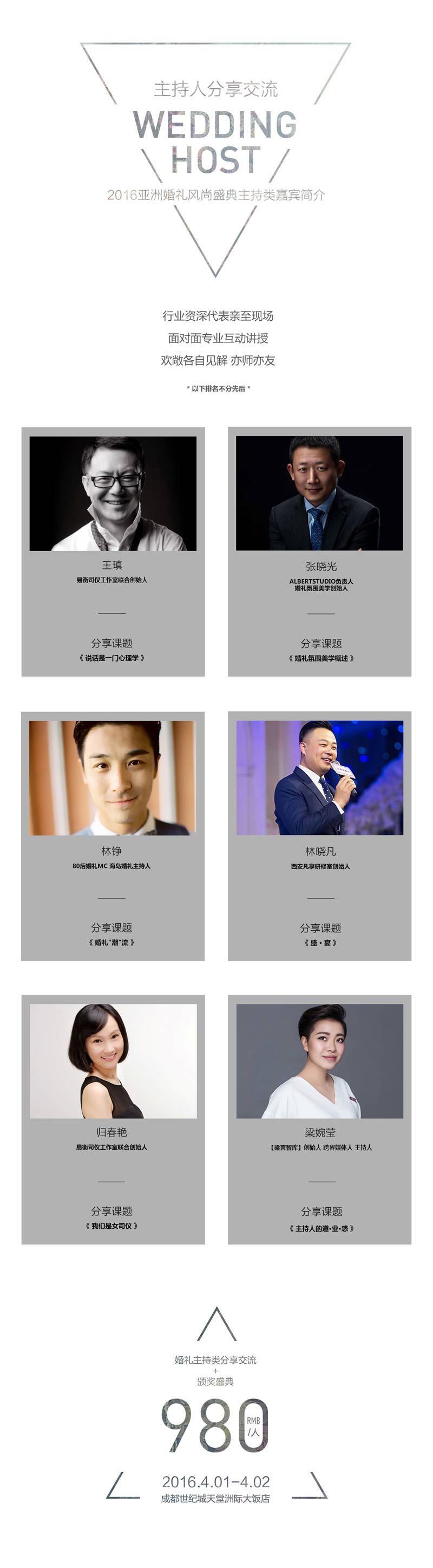 同时,业内知名婚礼主持人王瑱、张晓光、林铮、林晓凡、归春艳与梁婉莹也将侃侃而谈,分享自己的说话之道,揭秘行云流水的谈吐背后是怎样的一场修行与努力。满分的语言技巧与灵活的应变能力,定能为为现场来宾的主持技能升级加成。