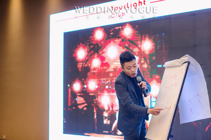 好的婚礼除了要有天马行空的创意之外,必须有一个可以落地执行的现场搭建施工方案。所以在此次课程上,Y先生并没有单一地只讲他擅长的灯光方案,而是从搭建开始,对一场婚礼的布景结构进行了剖析。
