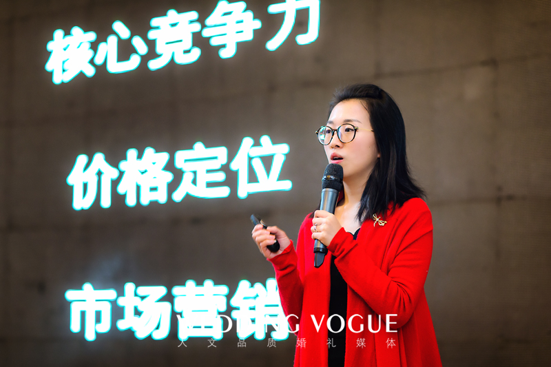 舒缓而充满情调的背景音乐,APPLE一袭色彩鲜艳的着装开启了《DNA WEDDING 品牌之路》的精彩分享。从个人成长、求学、恋爱、工作到决心创业,APPLE与大家分享DNA WEDDING 品牌的诞生之路。从初创业的简单婚礼创作到如今各种色彩的巧妙驾驭, APPLE与大家分享DNA WEDDING 品牌的踏实铸就。婚礼一场比一场惊艳,这份职业带给APPLE更多的是人生的深刻感悟。讲课的时候她常说一句话:“好幸福,人生中竟然有这么多美好的事,觉得这份职业好棒。”因为这种发自内心的满足与感恩,让在座学员也体会到了婚礼人的那份幸福。