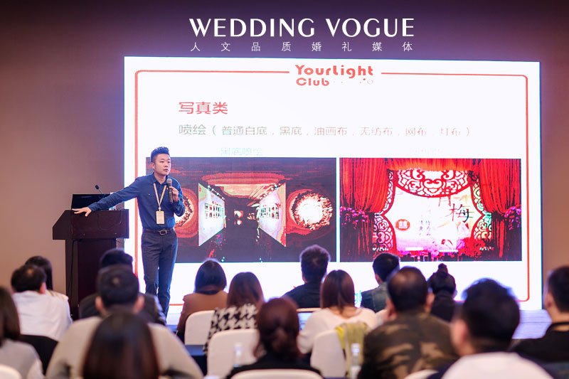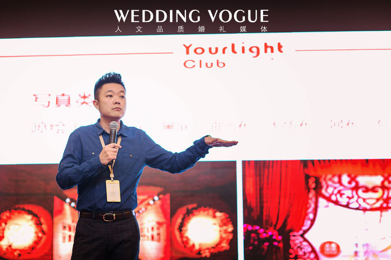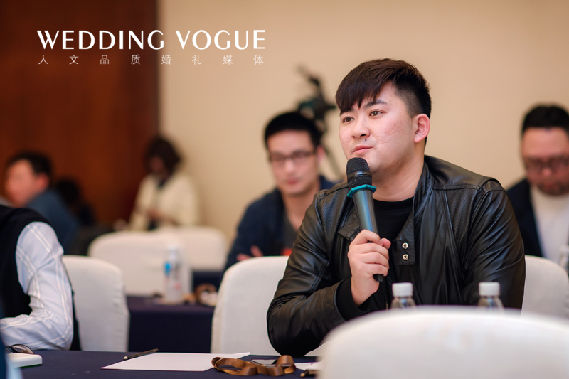 婚礼现场的完美呈现和还原离不开摄影师的努力。Y先生特地邀请自己的好朋友,业内资深摄影师Hydis上台,讲述了摄影在还原现场效果时候遇到的难点。Hydis表示,很多细节是后期无法改变的,需要和灯光、颜色、亮度等多方面的配合。通过和学员的互动,Hydis也对于如何拍摄好当今流行的高纯色婚礼和白色婚礼提出了自己的想法。