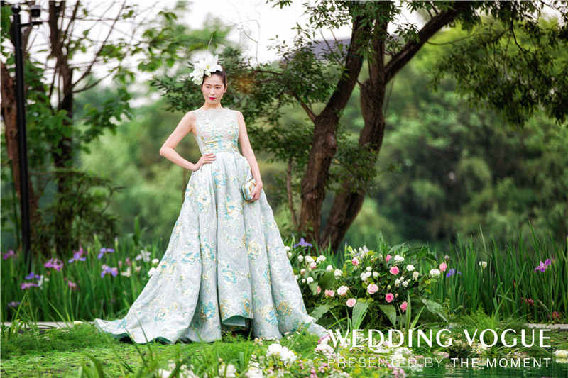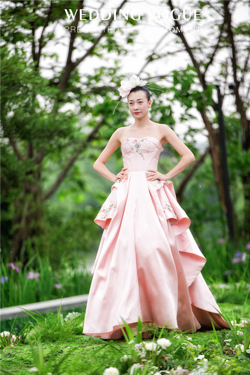 此次,MANLI BRIDE高级定制联手杭州知名化妆师刘超,为《之间》婚礼秀带来度身打造的婚纱走秀。MANLI BRIDE高级定制特意采用了符合春天的颜色,并加入刺绣元素。裙上的花朵在模特的演绎下栩栩如生,与春色融为一体。而化妆师刘超则在妆容上采用了春天特有的花朵元素。当身着婚纱的模特缓缓走上泳池中用草坪铺成的T台,婚礼秀正式拉开了序幕。枝桠装点了模特的妆容,繁花跃然于鲜活的生命,灵动倏然于眼旁,一切仿佛都是自然界浑然天成的。而最后的定格在鲜花围绕的草坪上完成,更是有种“待到春花烂漫时,她在丛中笑。”的美好。