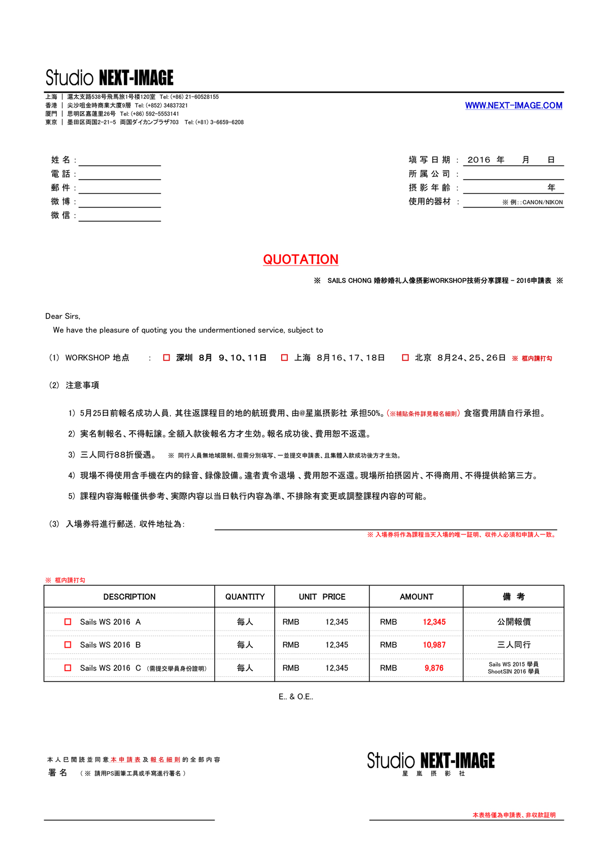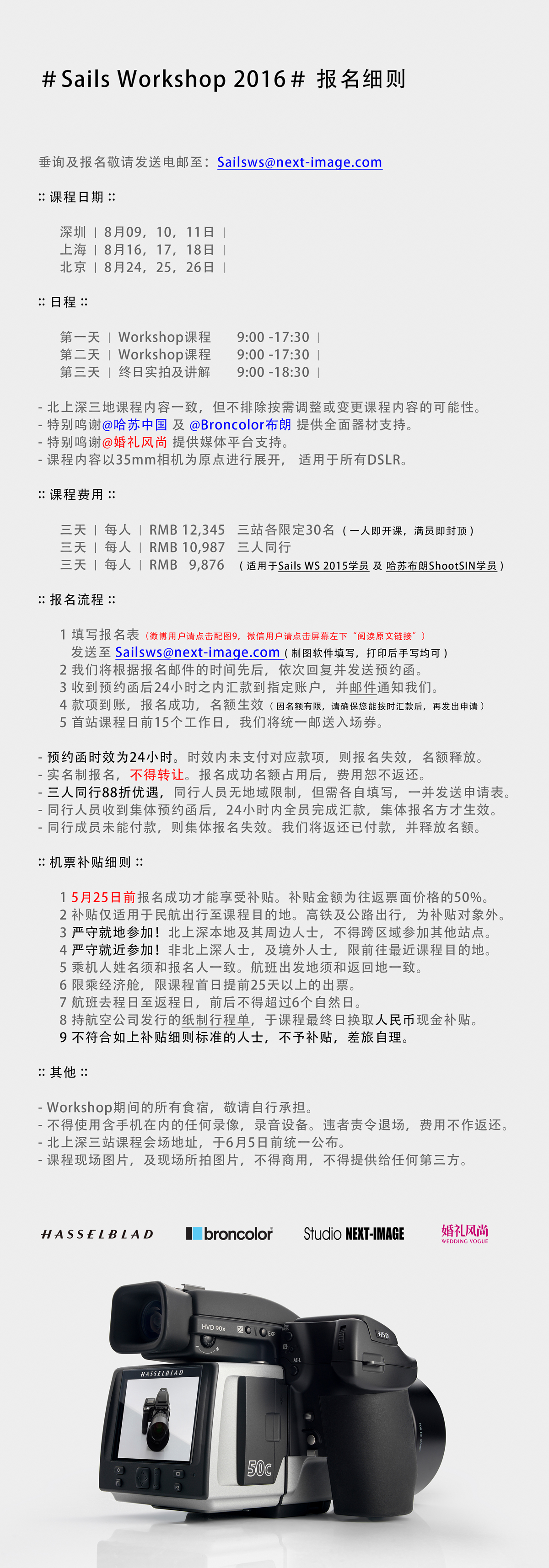 现在,Sails Workshop 2016 报名活动已正式开启,报名请填写文末尾图发送至: Sailsws@next-image.cn