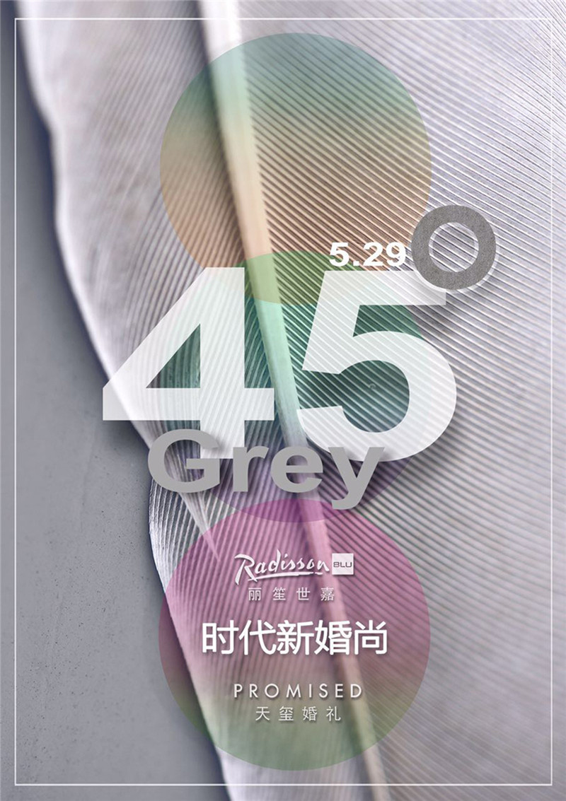 作为本场婚礼秀的主题,《45度灰》的灵感来源于色调上的变化。用白与黑的过渡表现两人相处的状态,再通过深灰色到浅灰色的层次变化,恰好表现出两人在相处中的调和与升华,人性的挣扎与彷徨 。