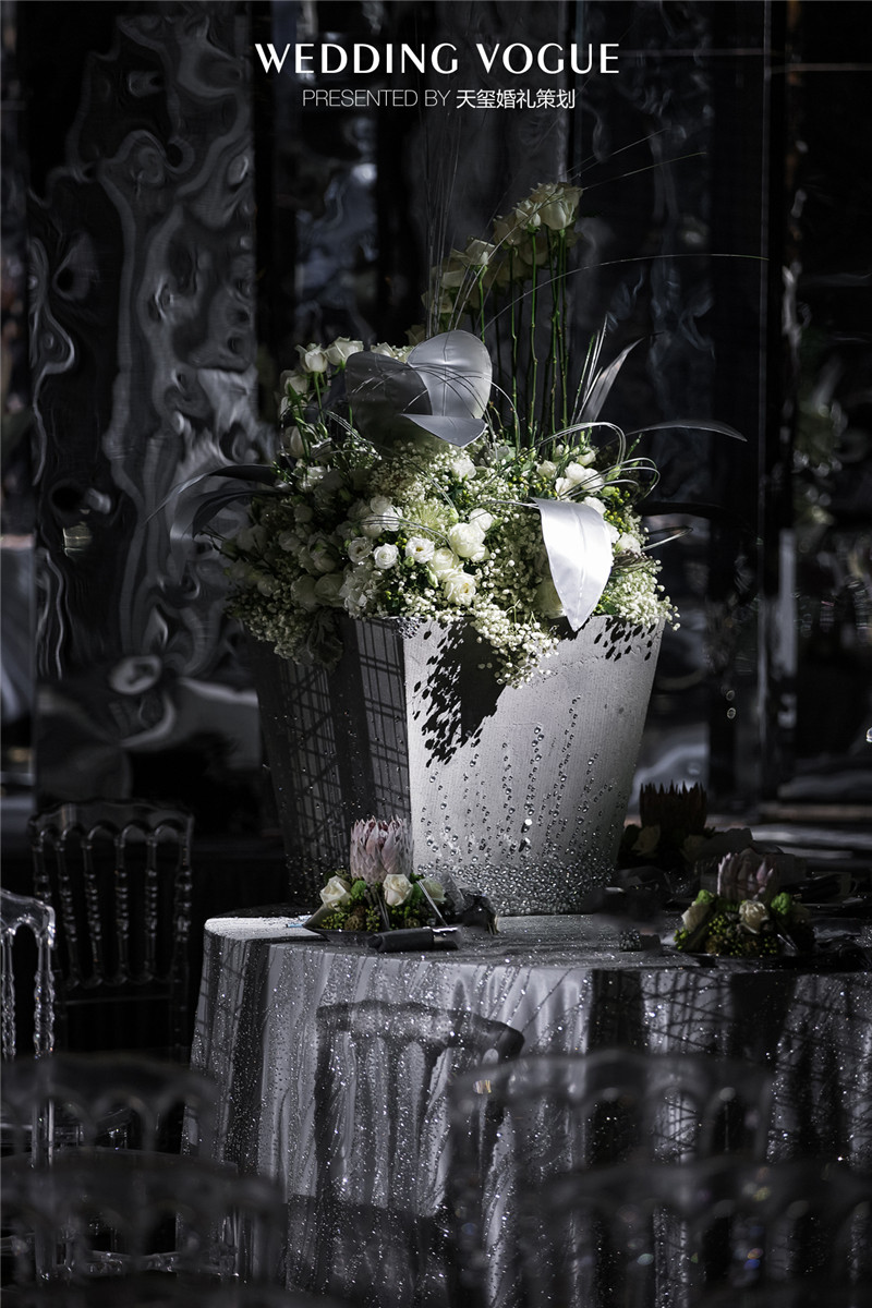 桌花的层架结构能很好的表现色调的变化过程,在黑色、灰色、银色、白色中寻找出新的美感。