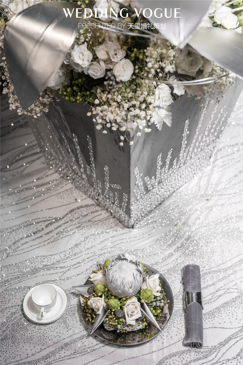 5月29日,天玺婚礼策划携手重庆丽笙世嘉酒店共同呈现了一场银灰格调的概念婚礼秀。