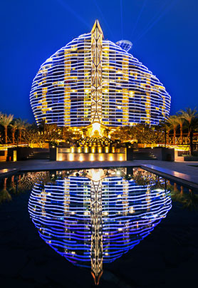 海棠湾红树林度假酒店位于三亚海棠湾的中心位置,主楼帆船造型华丽、优雅,与迪拜帆船酒店一脉相承。拥有时尚的流线造型,令人惊羡不已的内外光影秀,随处可见的奢华艺术气息, 酒店的主楼概念方案由阿特金斯设计,楼体由美国ZNA公司担纲建筑设计,楼体高达146米,拥有820米的最长沙滩海岸线,呈现海洋的气息和视线的穿透力。来自捷克知名设计家族的设计师米兰·西派克的全概念作品贯穿整个酒店,营造出浸入式的艺术度假体验,真正实现“红树林,艺术造”,被视为三亚的新地标。