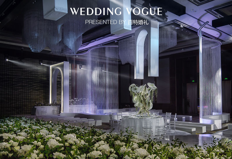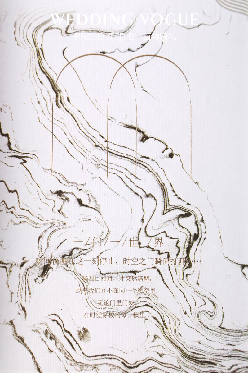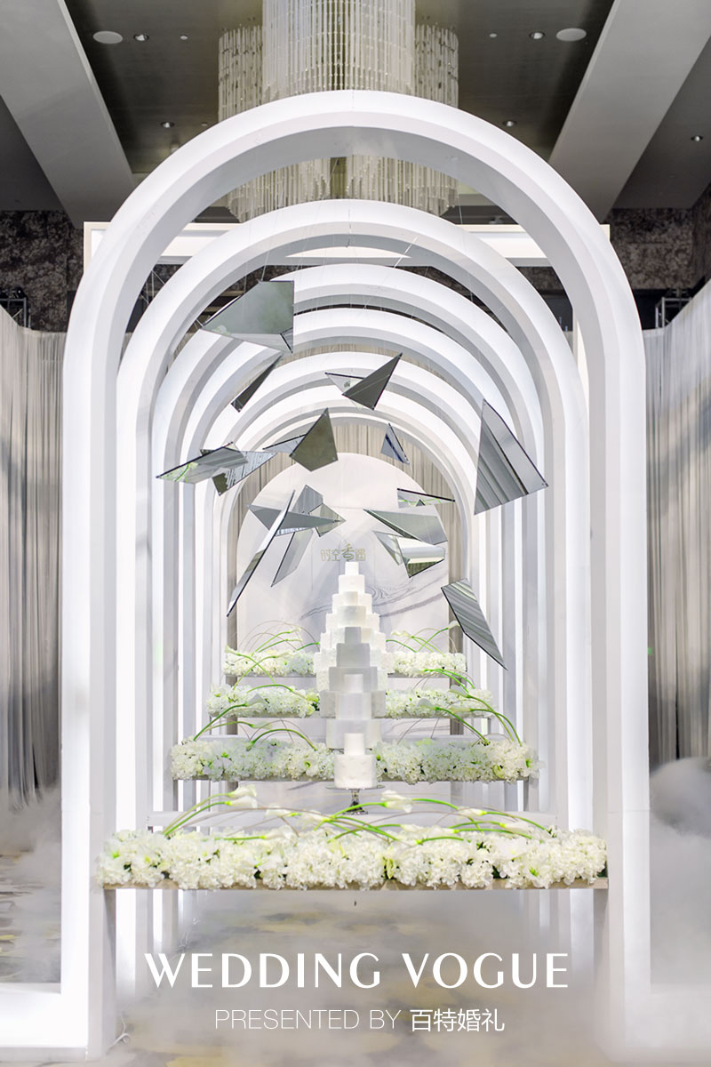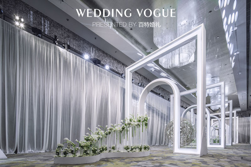 此次婚礼秀以“时空香遇”为主题,将门的弧线元素来作为主要表现元素。