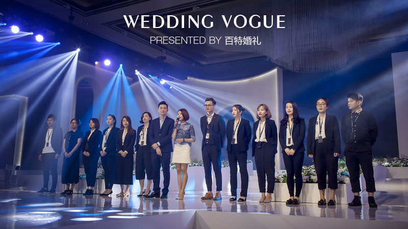 随后,百特婚礼全体主创人员上台,这一场震撼人心的大秀背后,是全体工作人员两天两夜的连续作战,是百特七年以来的积淀,是杭州城中香格里拉大酒店、主持人张晓光、MANLI BRIDE等合作伙伴的支持。