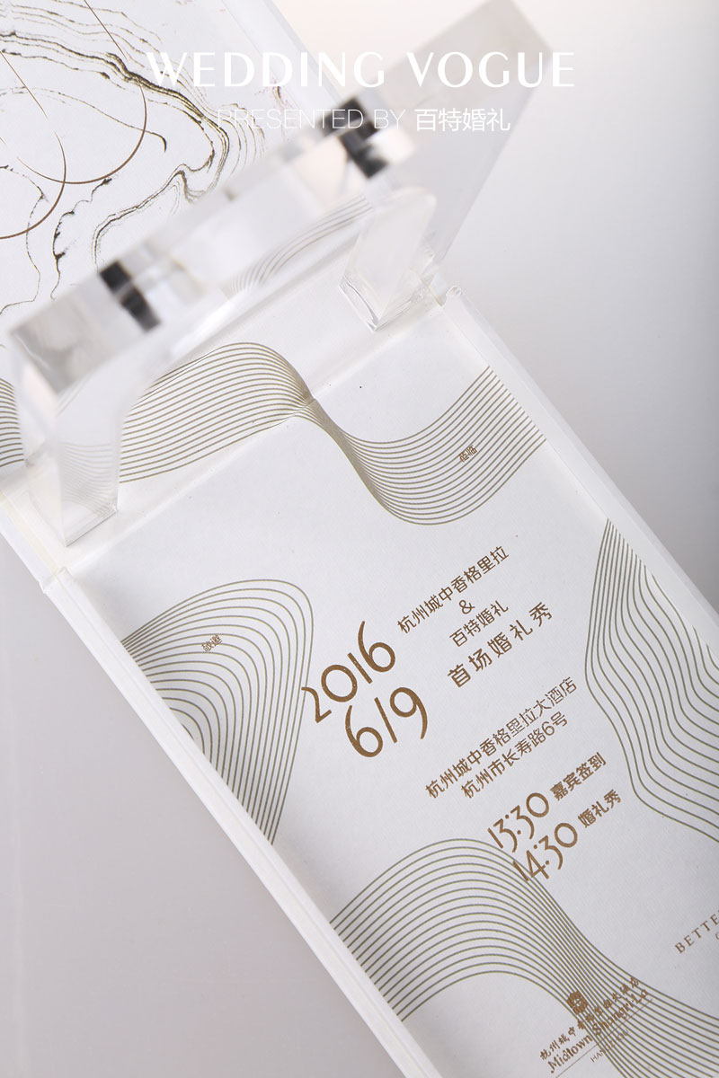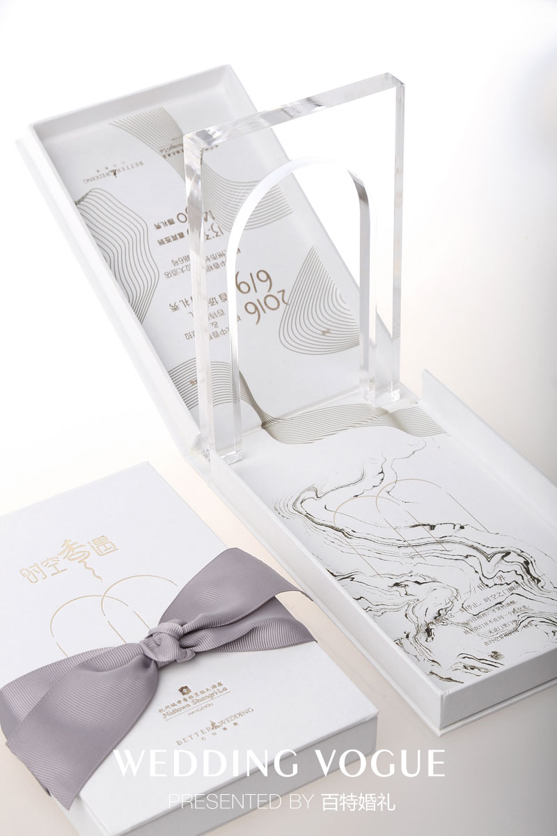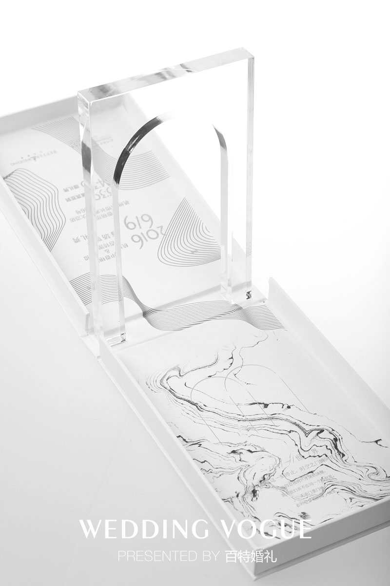 婚礼秀的另一大惊喜,则是由MeltingCandy很有爱婚品设计定制的邀请函。主元素门作为一个空间的载体,展现了这边与那边。一边是中式的水墨肌理,一边是简洁现代的条纹。不同质感 亦或是文化理念,通过简洁的黑白融合在一起,通过一个透明的门贯穿其中。区别于传统平面,立体的邀请函将时空的概念表达的淋漓尽致,趣味盎然。