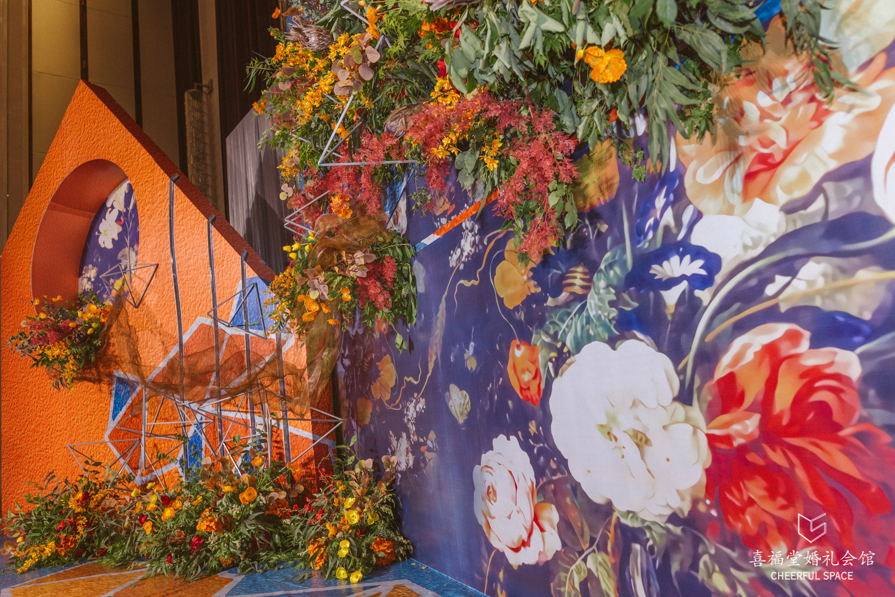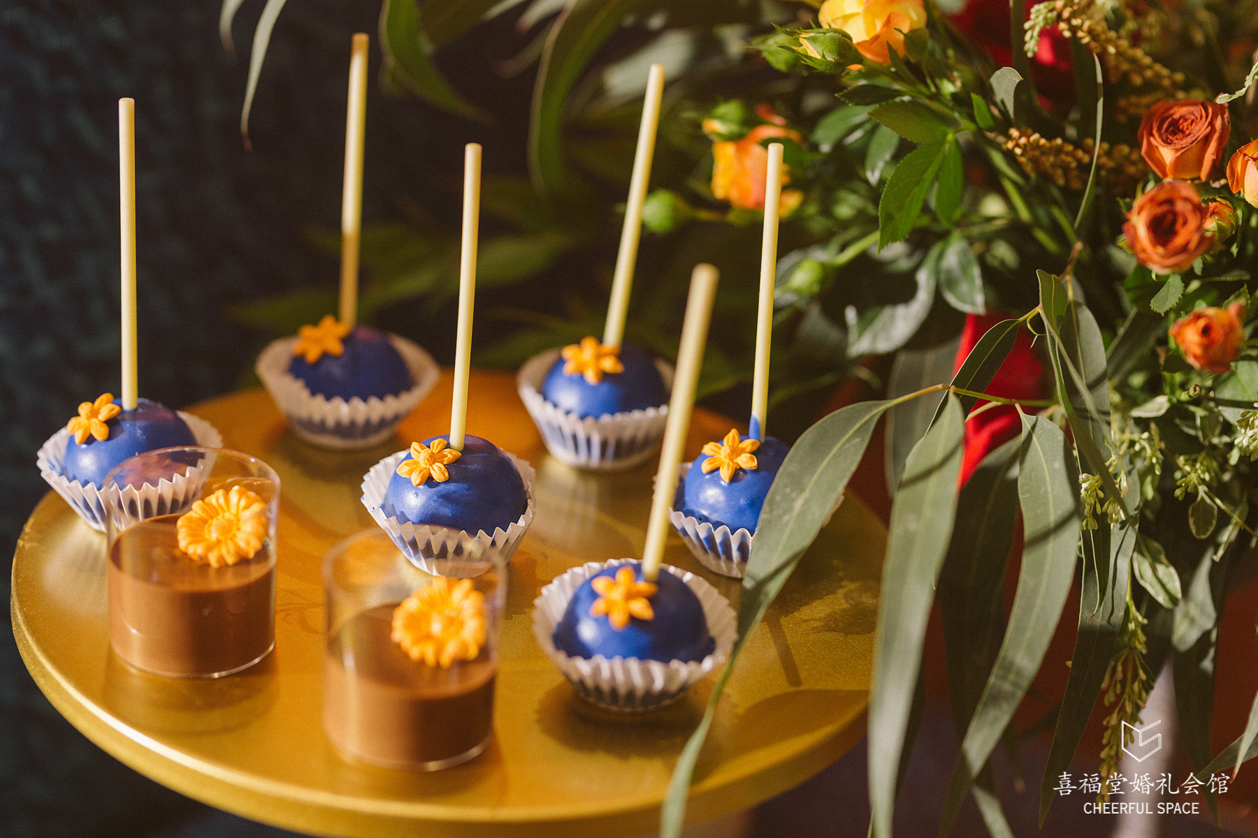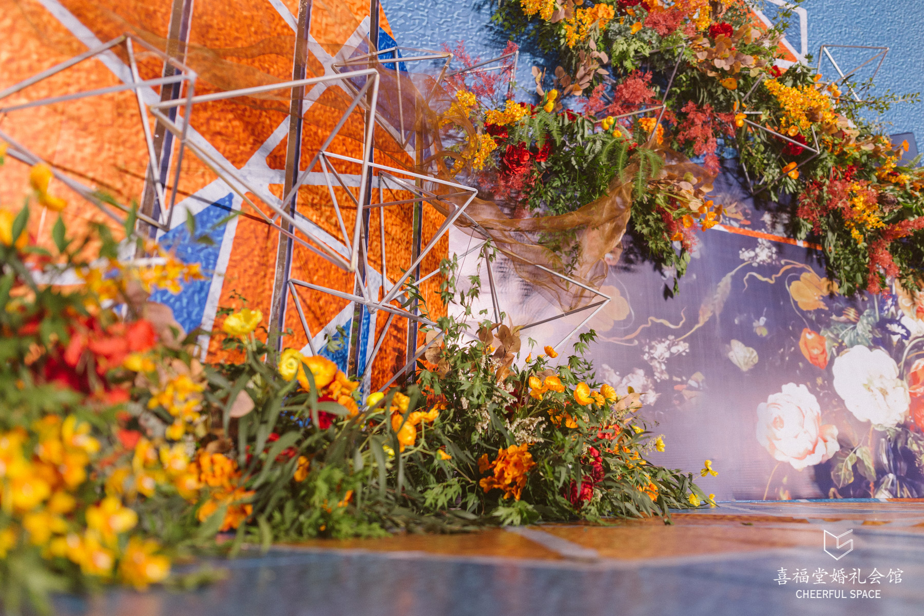 融合一贯的“定制婚礼”的概念,婚礼蛋糕是精心设计的油画风,配色也与婚礼现场相匹配。