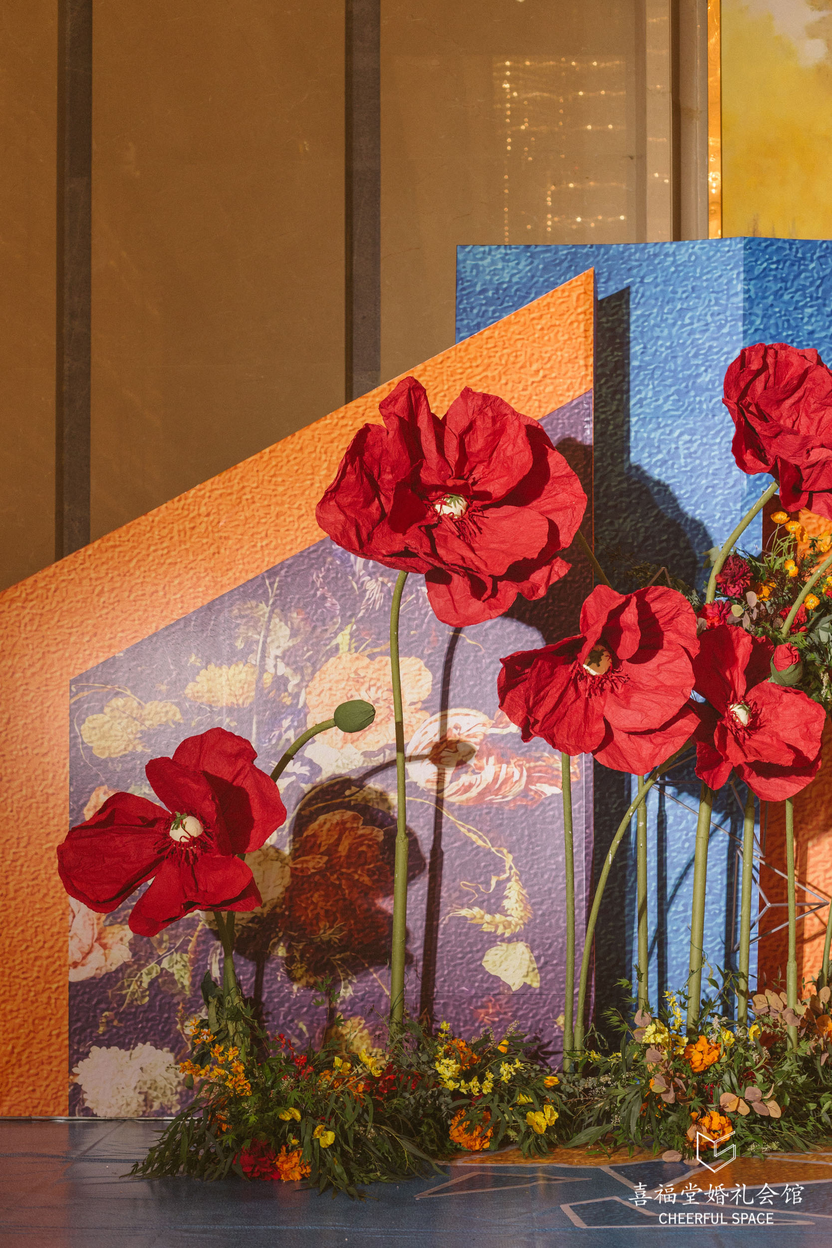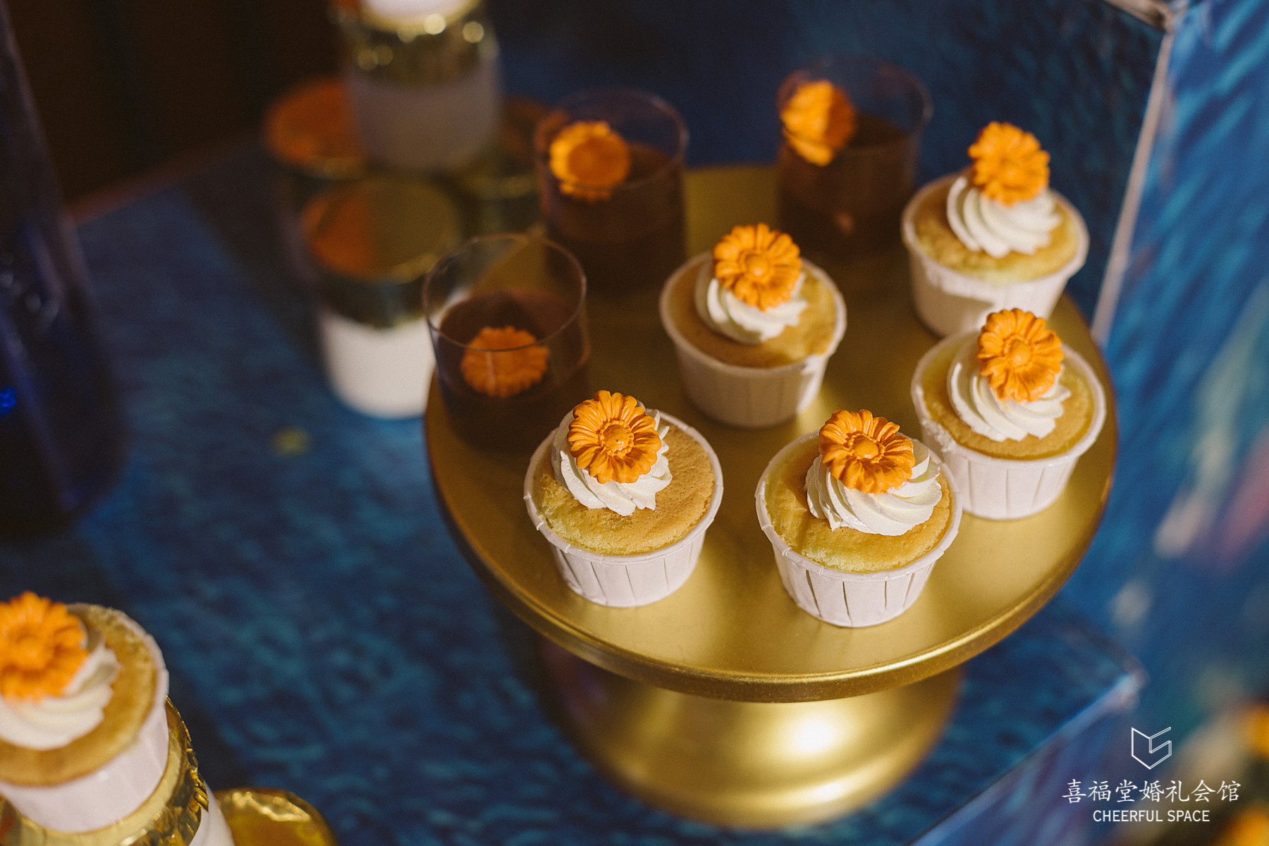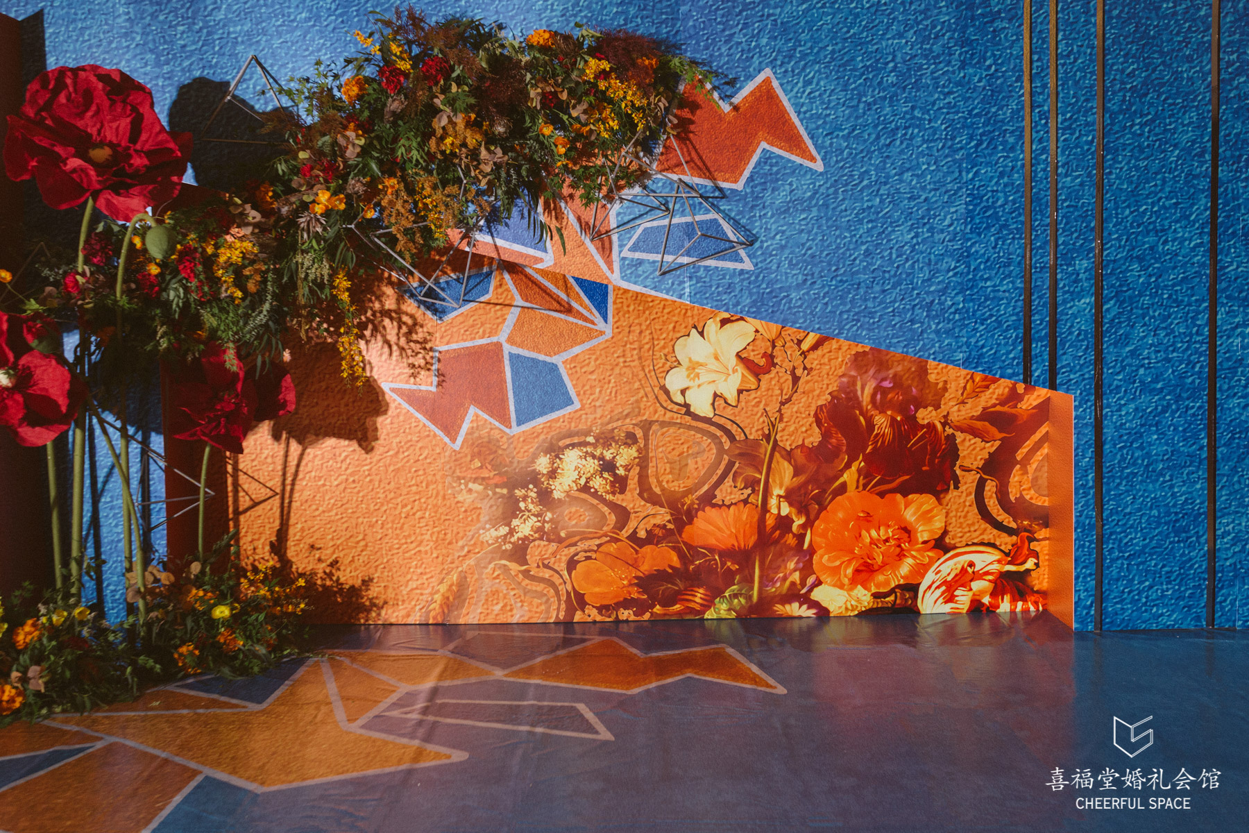 融合一贯的“定制婚礼”的概念,婚礼蛋糕是精心设计的油画风,配色也与婚礼现场相匹配。