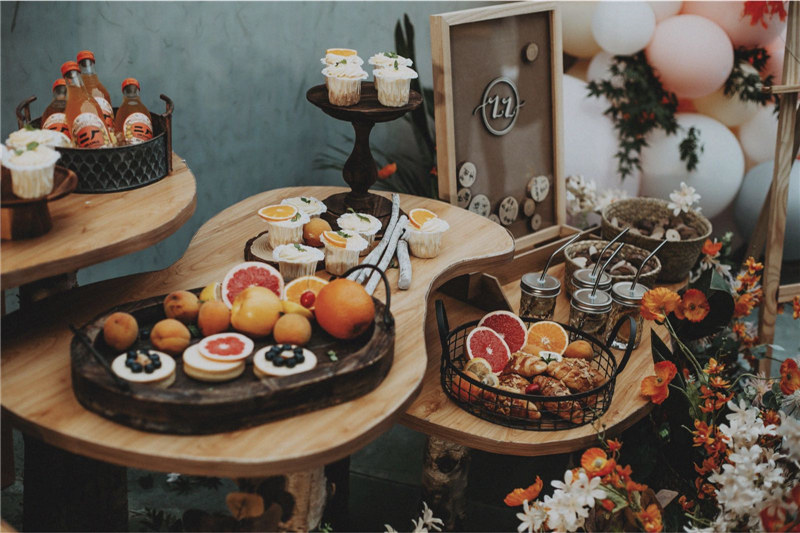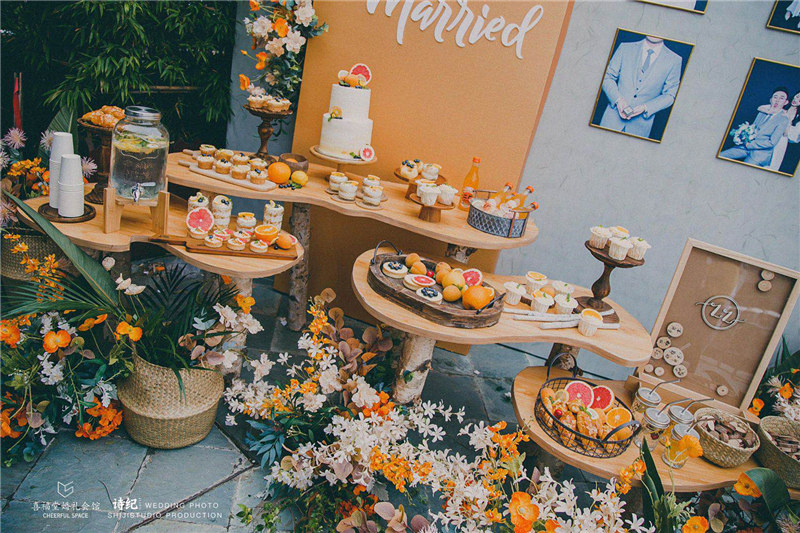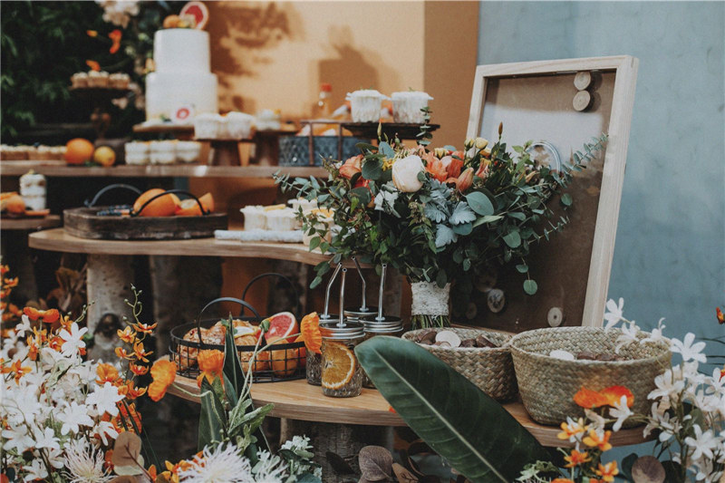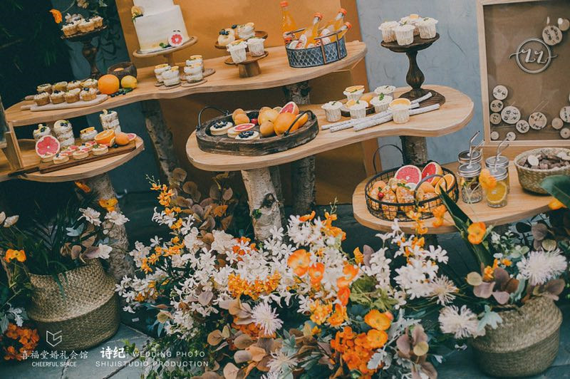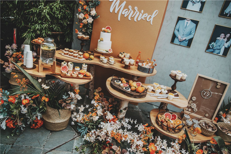 一场婚礼的甜品台非常重要。造型美丽的甜品不仅可以起到装饰的作用,而且在正式宴会开始之前,宾客们可以提前享受美味,聊天,缓解尴尬的气氛。一场精致的甜品台会给婚礼加分不少。