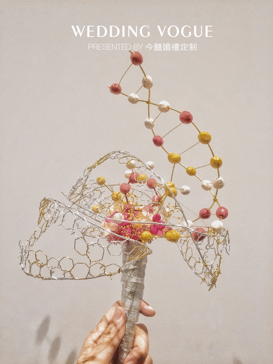 DNA的偏刚性和婚礼的梦幻性,在手捧上将两者融合对于今囍来说无疑是一个新的挑战。刚柔并济才有了这个独特的DNA手捧,于新人而言,这场婚礼是他们爱情的产物,是他们的DNA,今囍而言,这个手捧也是今囍这场婚礼的产物,也是今囍的DNA。