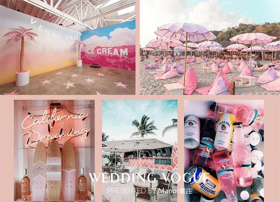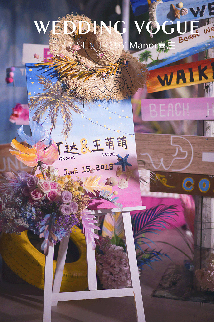 Miss’M(喜庄婚礼称呼新娘的昵称)是一个内心富足,外表开朗的姑娘,似乎在她看来,浪漫不是仪式,更多的是随心所欲。所以在前期沟通的过程中喜庄婚礼了解到,她喜欢泡W酒店的海滩酒吧,而他正好喜欢冲浪和玩滑板,所以当决定做海滩派对这个主题时一拍即合.....