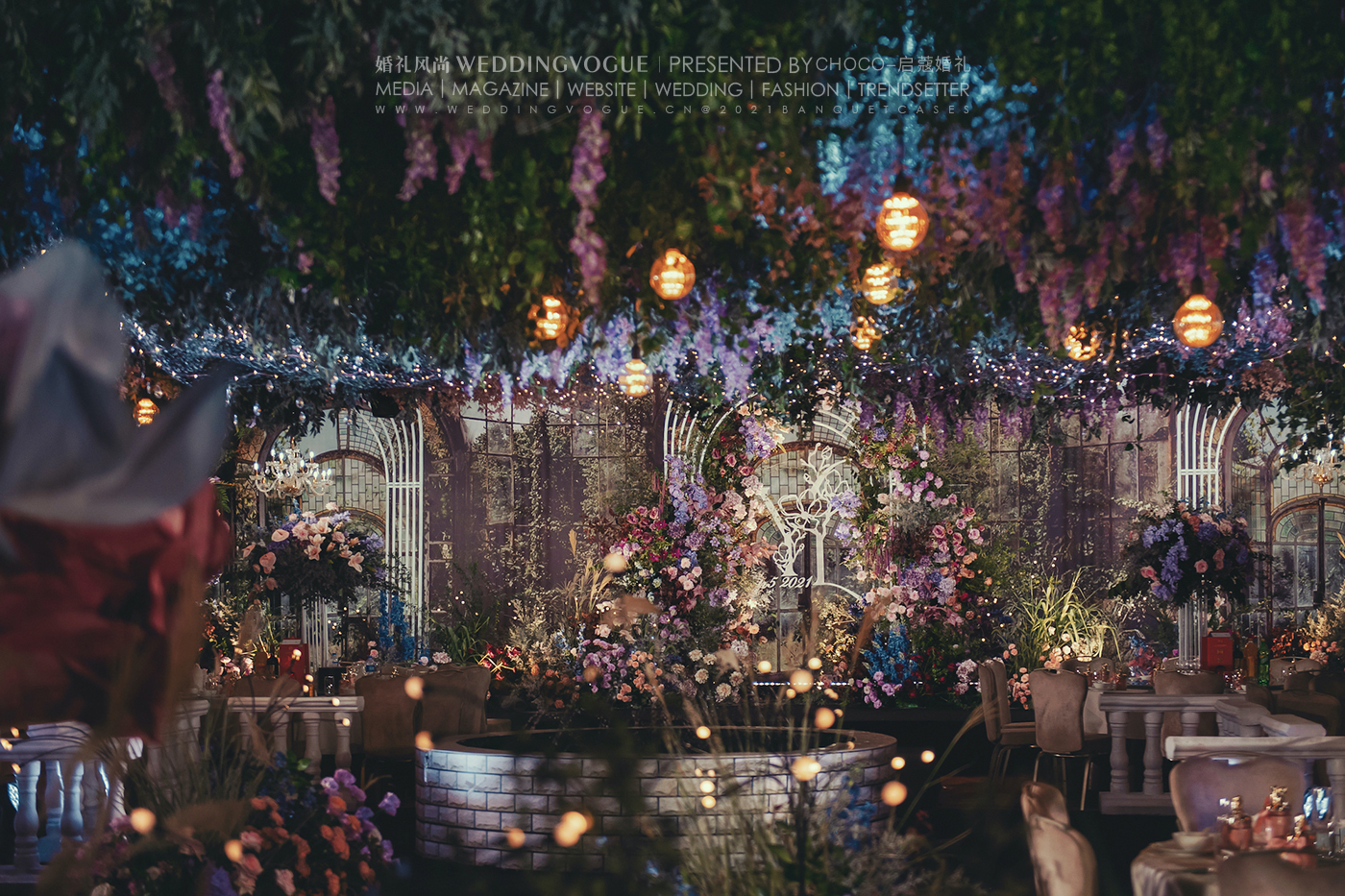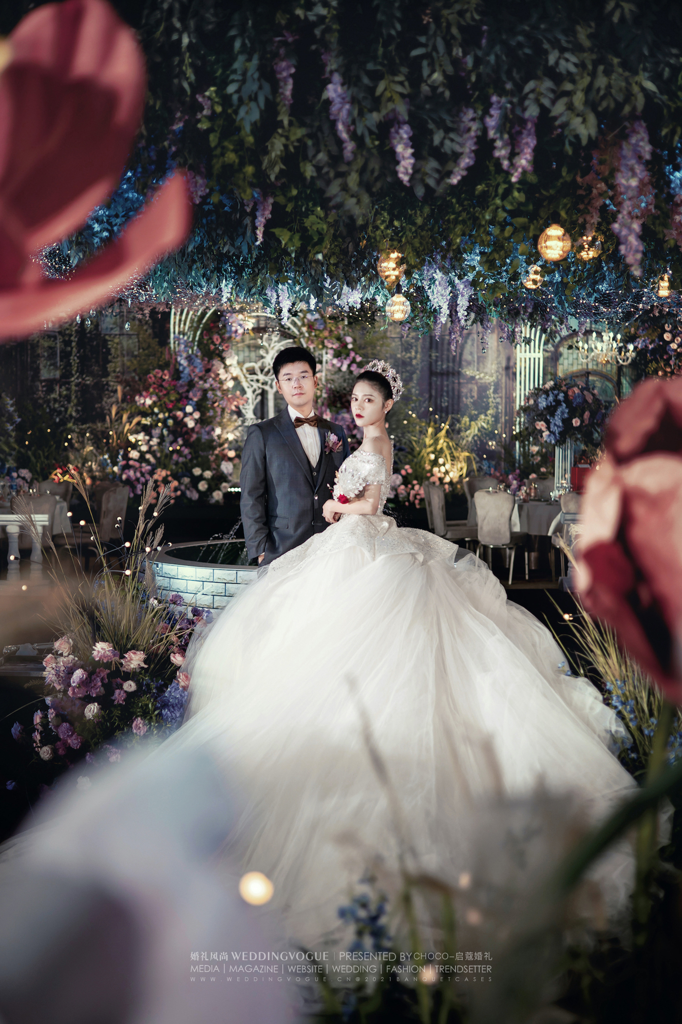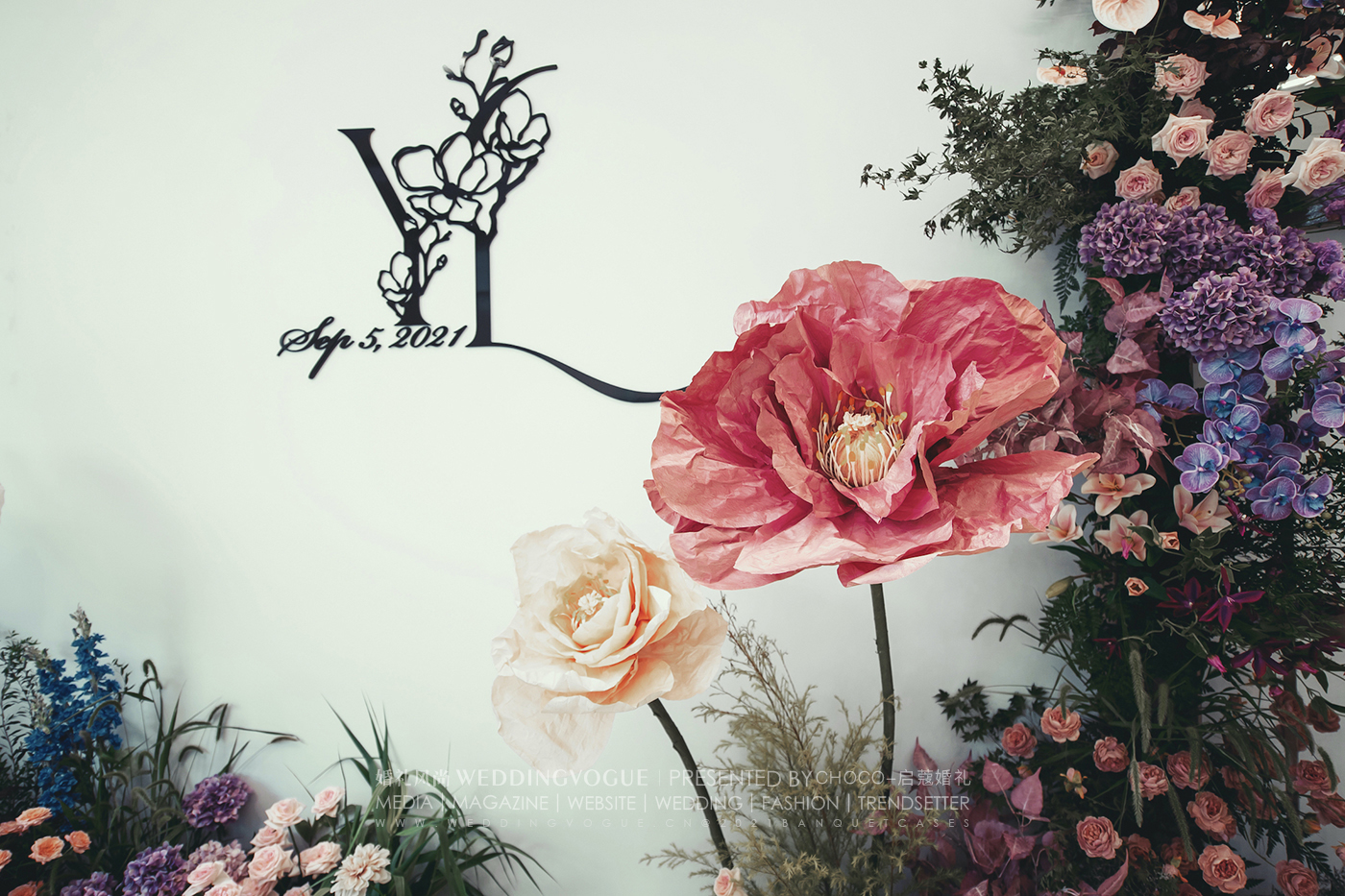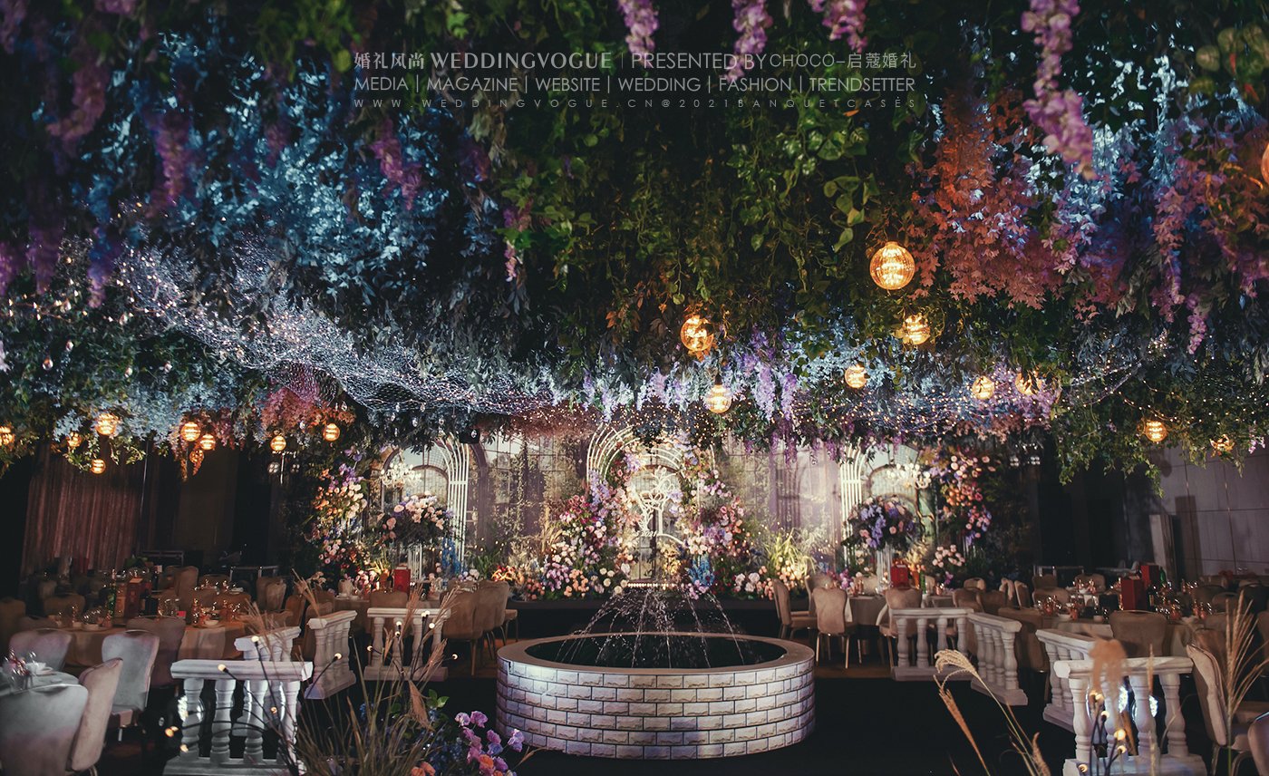 在启蔻婚礼的帮助下,经过多次沟通,新人明确了自己的婚礼喜好:浓墨重彩的颜色和花园系的风格。