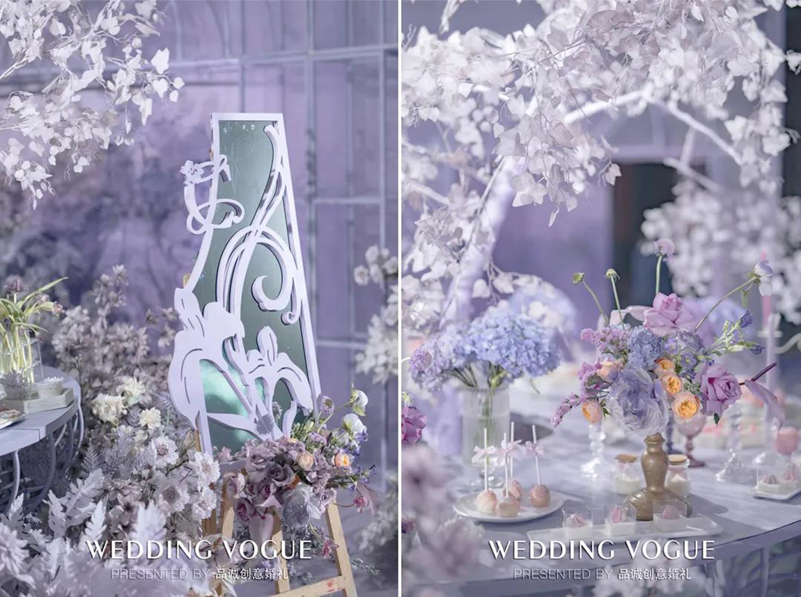香芋紫的包围会让来宾感受到前所未有的清新,褪去一日的繁忙,忘却遥远的路程,来到这只有一个目的,那就是见证一对爱人婚姻之旅最美好的开始。