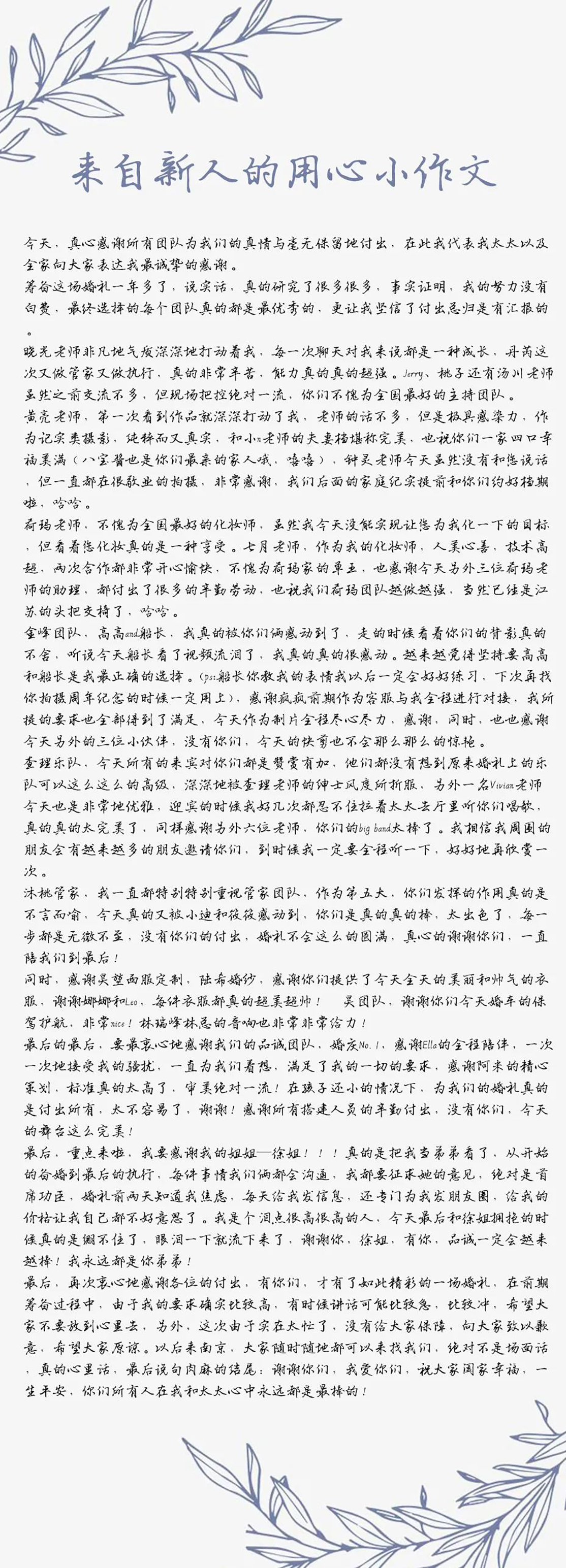但是当品诚创意婚礼看到这篇来自新郎的小作文时,依然被这份真挚所感动。