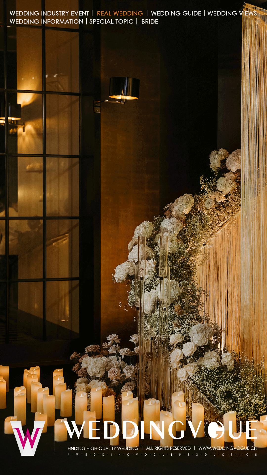 摇曳的烛光搭配花卉,让订婚宴动人心弦